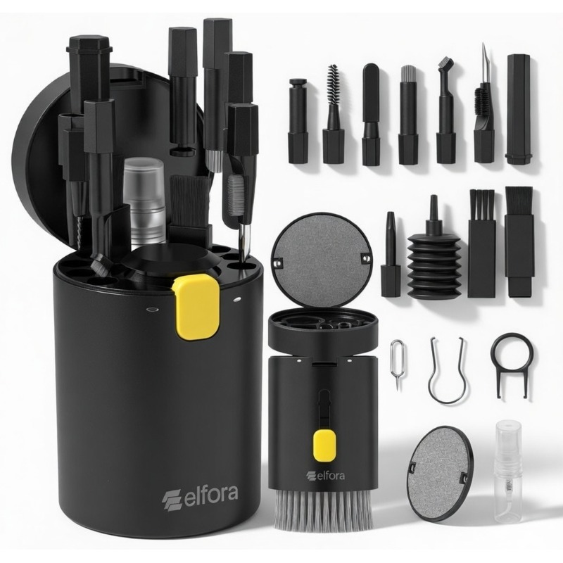 Electronic 20 in 1 Cleaning Kit| Multifunction Tool Kit with Screen Cleaning Cloth, Brush, Key Puller, Spray Bottle| Cleaner Kit for PC, Laptop, iPhone, iPad, MacBook, Airpod & Keyboard(Black)