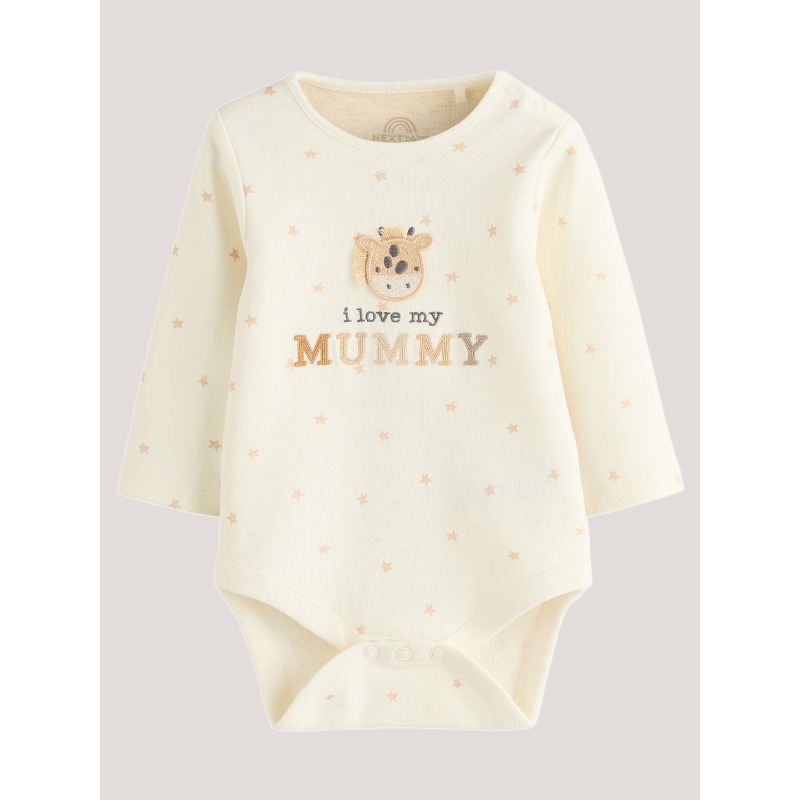 Beige embroidered bodysuit has round neck, long sleeves, and snap button closure at crotch area Material & Care 100% Cotton Machine wash Specifications Fabrics Cotton Neck Round Neck Net Quantity 1 Net Quantity Unit Piece Occasions Casual Patterns Embroidered Sleeve Length Long Sleeves Sustainable Regular Wash Care Machine Wash