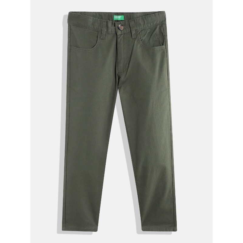 Olive green woven trousers Regular fit Mid-rise Length: regular Pattern: solid Flat-front, with no pleats design Feature: plain 4 pockets Size & Fit Fit: Regular Fit Material & Care 96% Cotton 4% Elasthane Machine Wash Specifications Waist Rise Mid-Rise Length Regular Fit Slim Fit Closure Button Type of Pleat Flat-Front Weave Type Woven Fly Type Zip Number of Pockets 4 Features Plain Number of Items 1 Package Contains 1 trouser